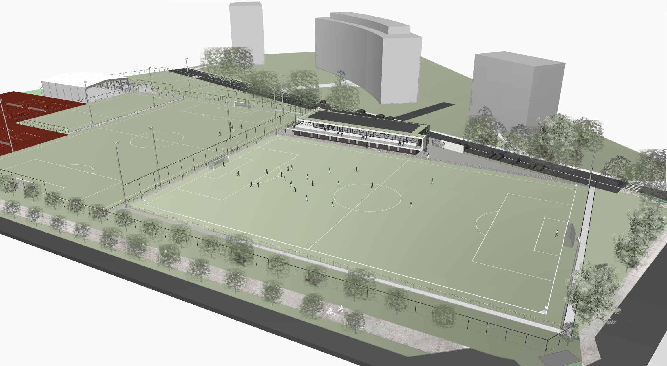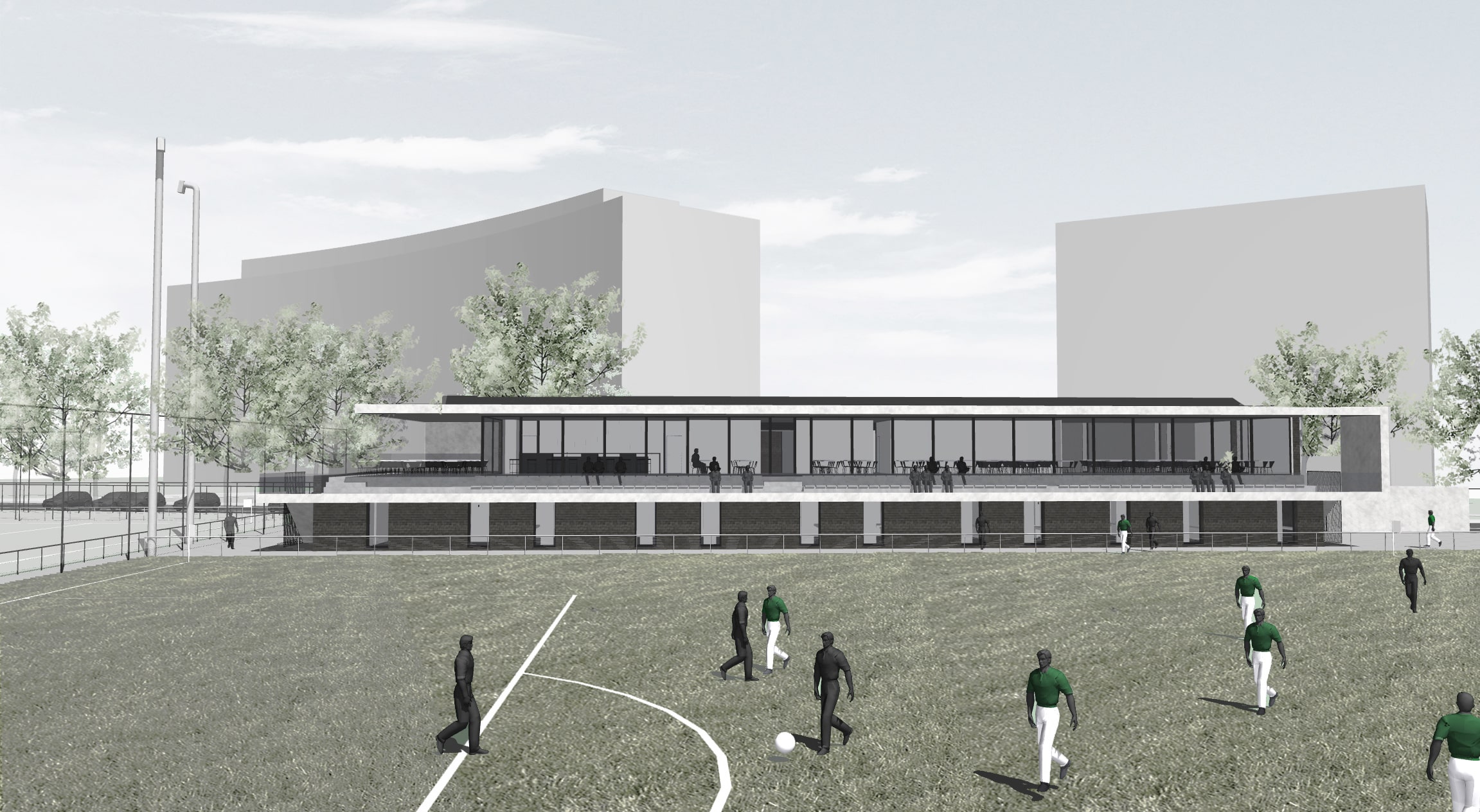 > Création d’une cafétaria, vestaires et tribune.